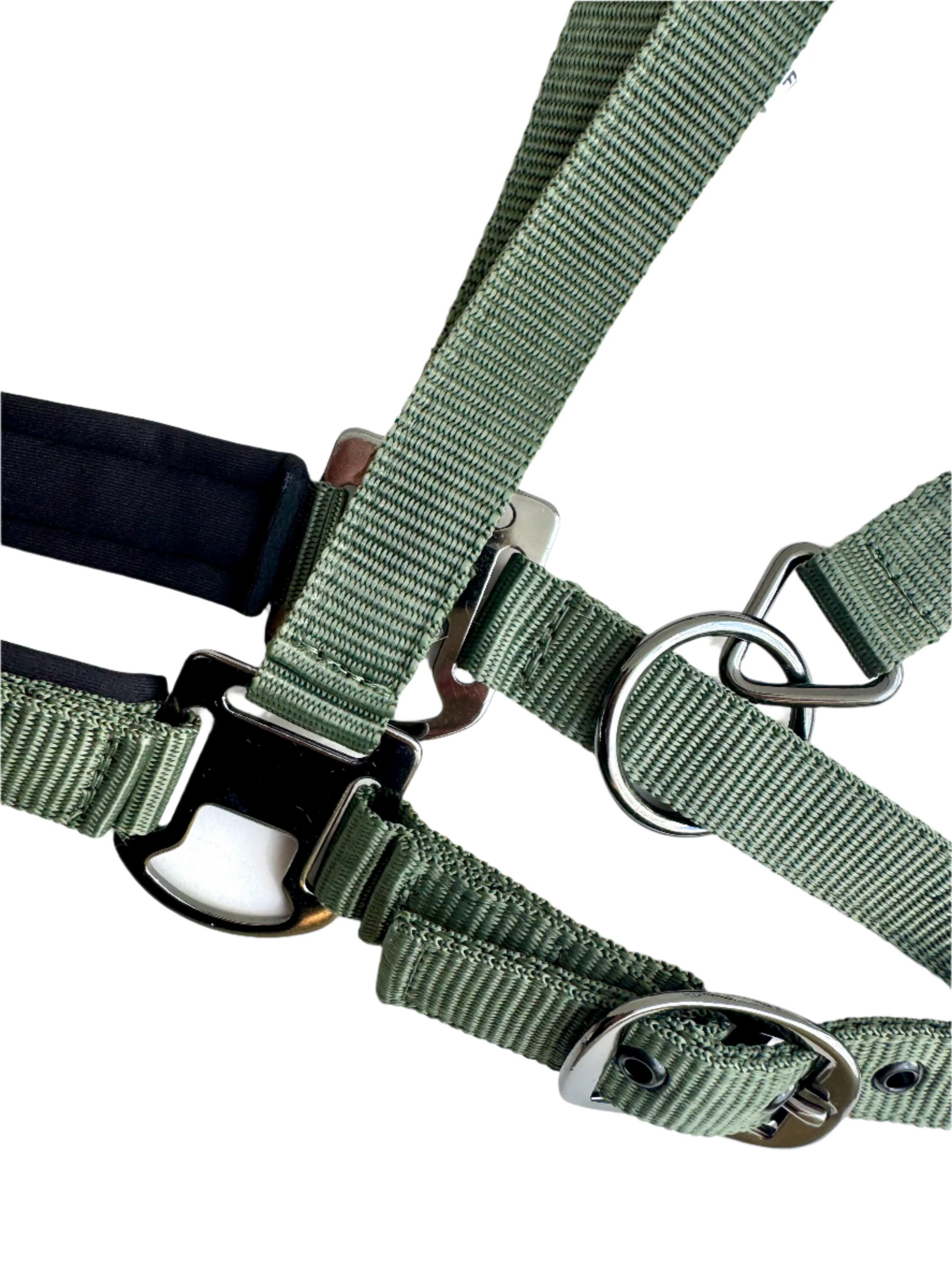 Raffineret design: Spænderne på grimen er elegant udført i en mørk chromfarve, der tilføjer et touch af raffinement til hestens udseende. Dette gør grimen ikke kun funktionel, men også en stilfuld tilføjelse til din hests udstyr.