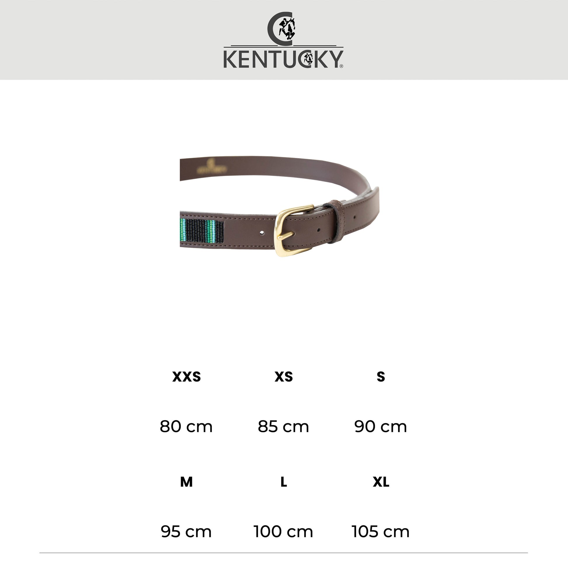 Smukt og elegant bælte fra Kentucky Horsewear. Bæltet er lavet af vegansk læder og har de smukkeste små sten, som danner det fineste mønster og et helt unikt look. Perlerne er sat på bælet i hånden.